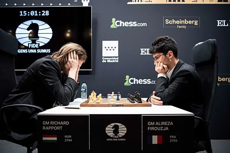 今天过19岁生日的法国棋手菲罗贾,在一度败势的车兵残局中,顽强守和匈牙利棋手拉波尔特。首轮双双获胜的前候选人赛冠军,俄罗斯棋手涅波姆尼亚奇和美国棋手卡鲁阿纳则激战成和。