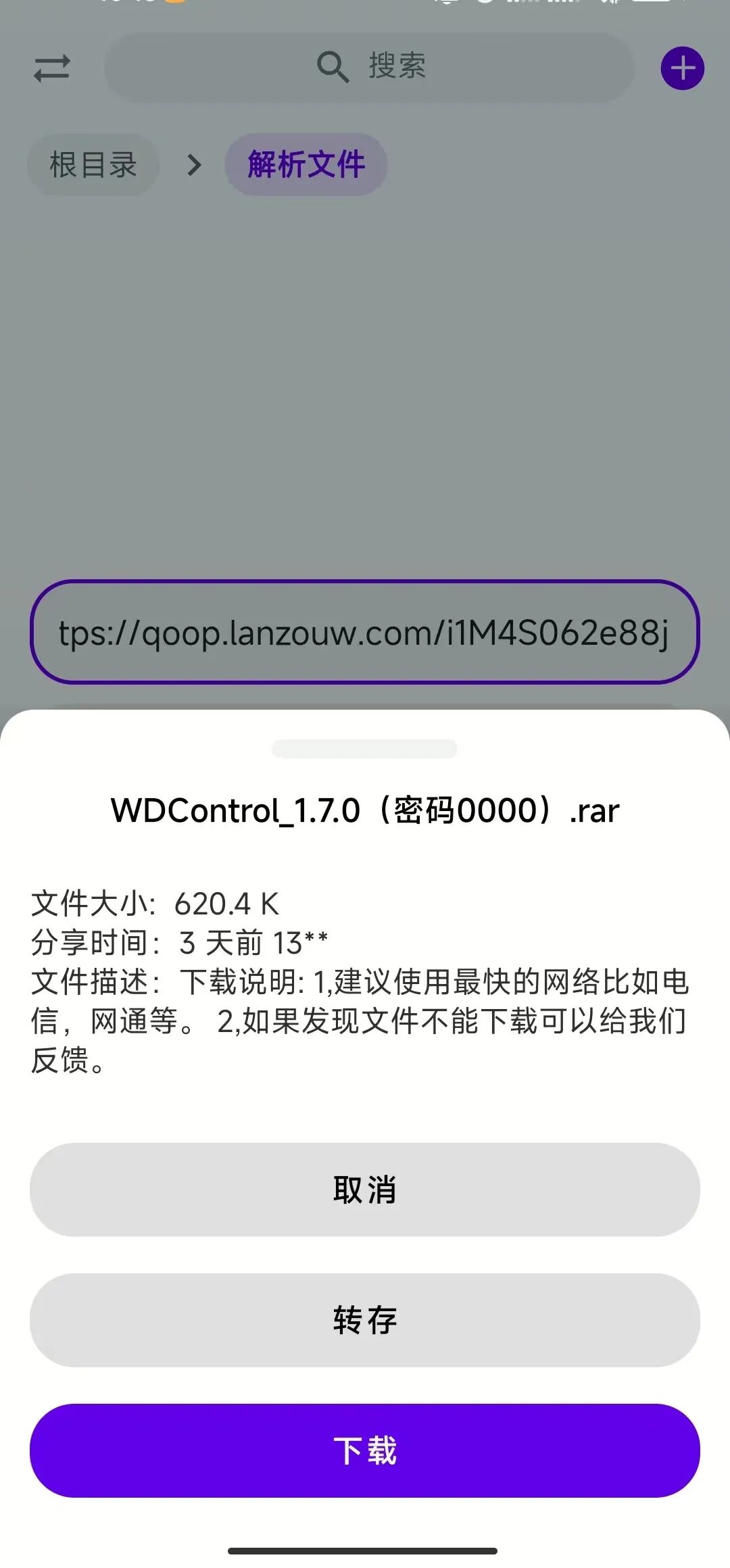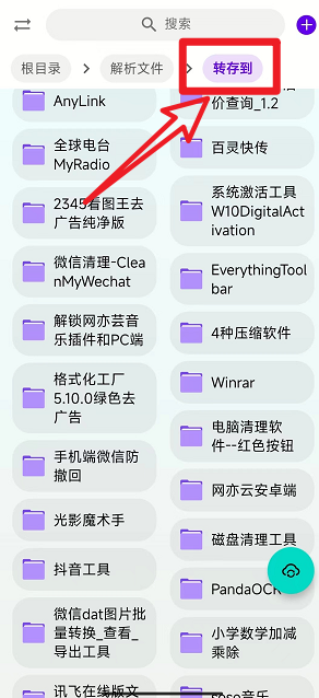 解析出来的文件支持“转存”和“下载”。尤其好用的是“转存”功能,这在官方安卓版本和网页版本都没有此功能。