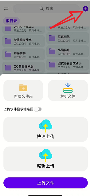 软件支持快速上传、新建文件夹和解析文件,特别是这里的解析文件的功能,官方版本是没有的。操作方面,大家只要把分享链接和密码输入进去,再点开始解析即可。