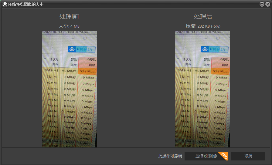 软件还带了图片无损压缩功能,看看图片压缩的前后效果,4M的图片,压缩成了232K,但画质基本不受影响,太牛X了~~~