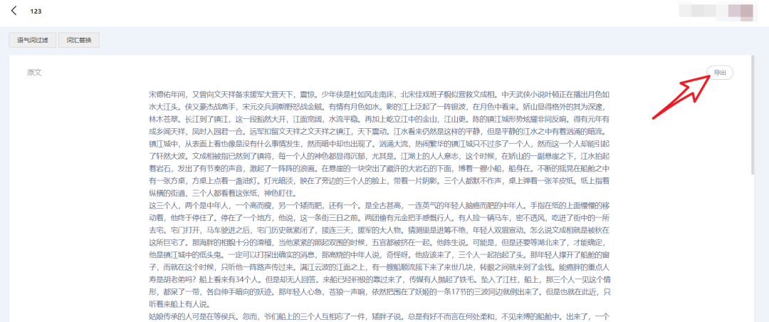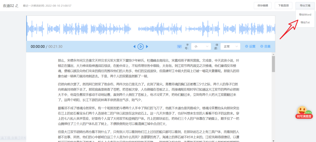 转换成功以后的文本,可以点右上角的“导出”,即可导出文字!