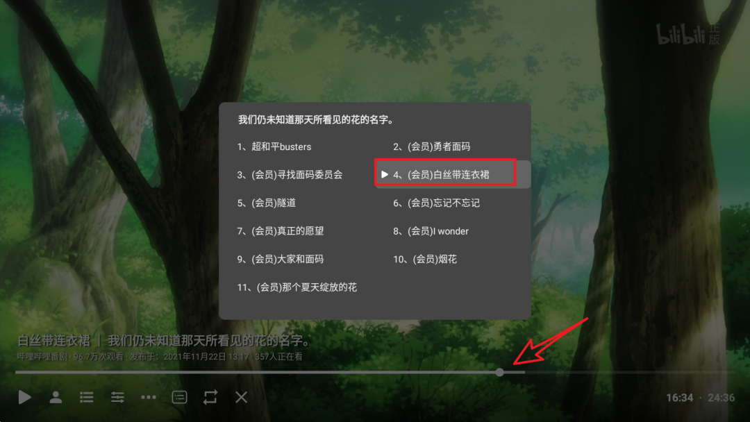 BB LL是一款V1P可以可通用的TV端软件,看看同样一个视频,同样是第4集,我开了会圆以后登录后,在这款BB LL里已经可以播到最后了,没有提示付费。