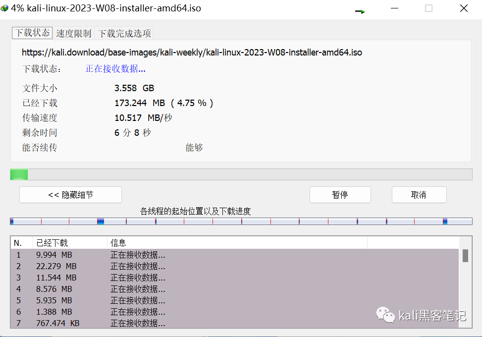 可以看到当前下载速度已是全速下载了。(本地最大下载速度