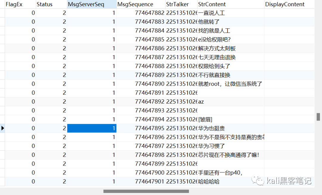 这时,将原来的加密数据库MSG0.db进行了解密。将得到的数据库用数据库管理工具Navicat打开。效果如下: