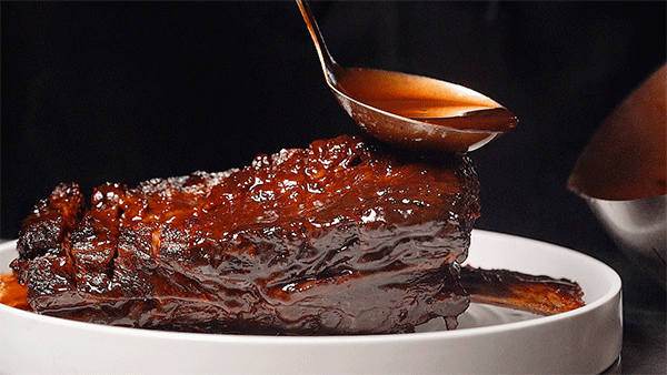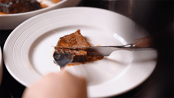 主厨说这道菜对时间的把控极为讲究,先用中式卤制的方法使牛仔骨慢炖入味,再放进烤箱烤上10分钟左右,这样做出来的牛肉外焦里嫩,层次感更足。