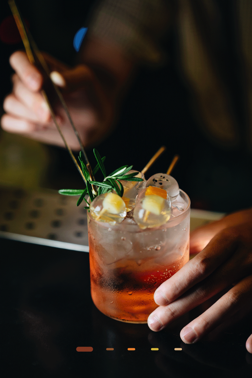 店里晚上八点后摇身一变,就成了氛围十足的小酒馆,环形的吧台设计,酒柜上摆满各大品牌的威士忌和珍藏的葡萄酒,总能找到属于你的那款味道。