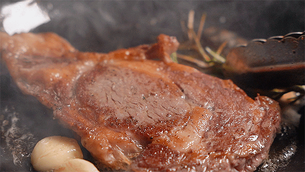 雪花分布十分均匀「澳洲M5肉眼牛扒」,在煎制过程中只用茴香裹上一层诱人的外衣,5分熟度正正好好 ,吃起来很筋道。