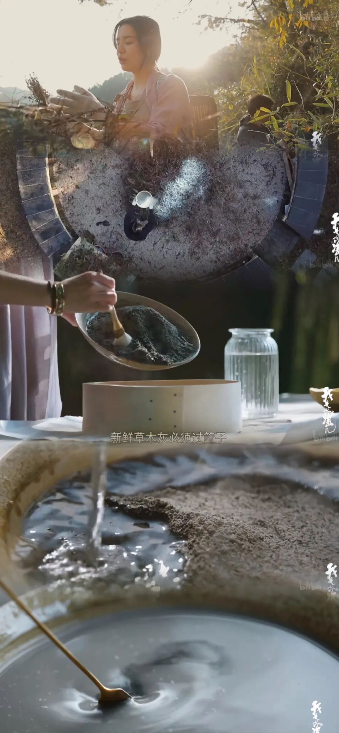 “釉”一般根据制瓷地周边的树植制作,将草木灰与石英、大理石、高岭土等矿物原料和原料按比例研磨调制,形成硅酸盐,也就是“釉”。