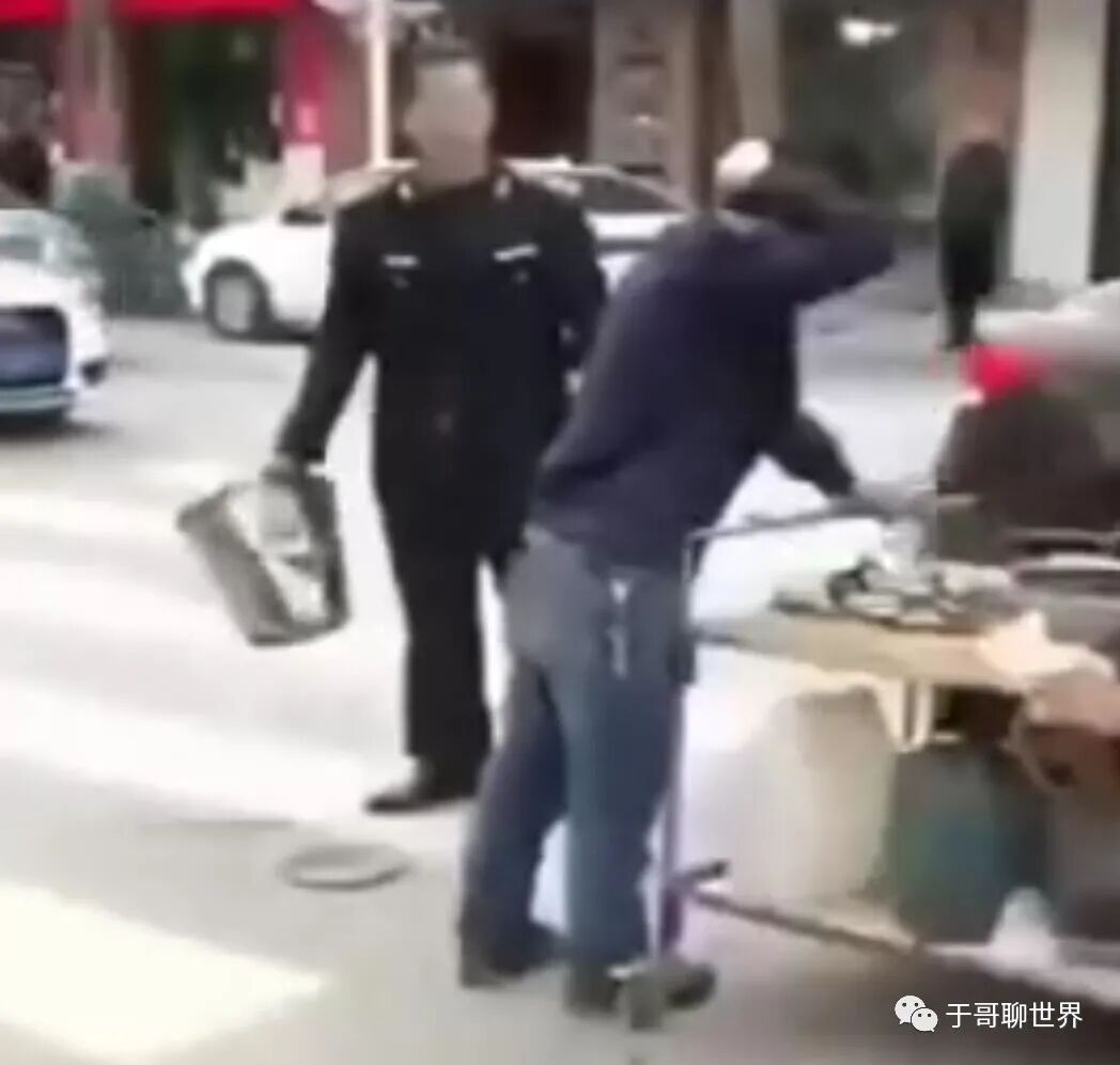 视频中,一名身穿制服的城管工作人员,“英勇”的举起铁桶向弱小的小贩儿头上执法,由于铁桶不够给力,城管大人又顺手拿起了煤气灶上的钢圈向小贩的头上“服务” ,小贩被钢圈和铁桶“管理”了以后,在恐怖中痛苦的捂着后脑勺。