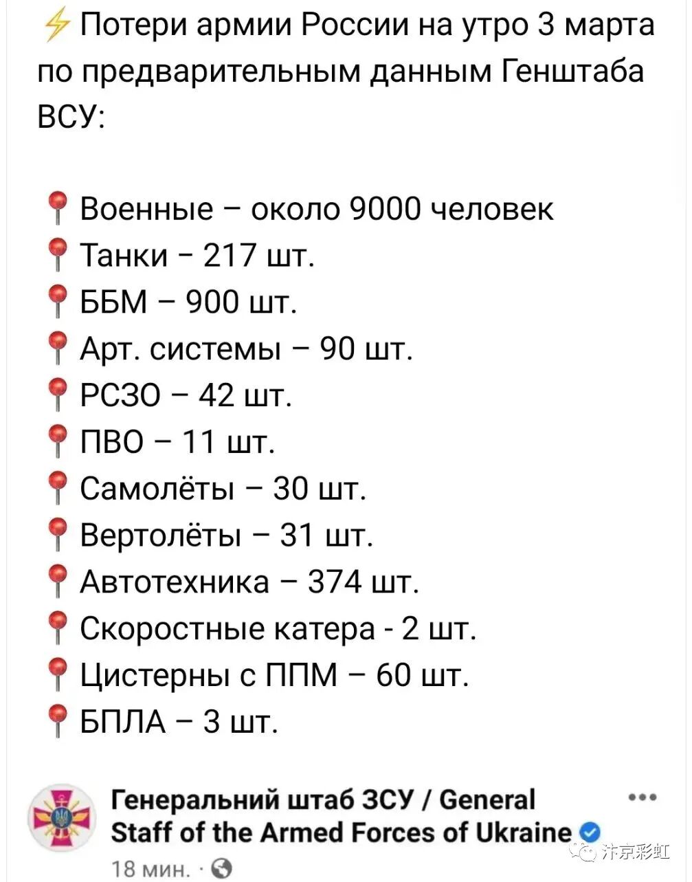 进攻乏力,战损严重,又被国际社会史无前例的制裁,支撑战争的经济来源被削弱,在军事和经济两方面都受到重创的俄罗斯,在这个时候,不得不考虑尽快与乌克兰达成停火协议。