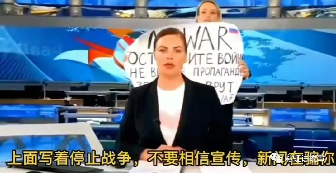 随着俄罗斯反战的声音不断扩大,俄国亲政府的主要新闻节目《Vremya》在播出期间,一位女性抗议者在新闻主播的背后举着一个写有反战口号的大牌子。许多俄罗斯电视观众看到了反战活动,抗议者的标语上写着:“不要战争。停止战争…”