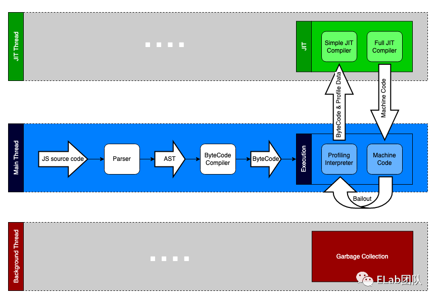 但其实我们平时写的代码有很多可以优化的地方,如多次执行同一个函数,那么可以将这个函数生成的 Machine Code 标记可优化,然后打包送到 JIT Compiler(Just-In-Time),下次再执行这个函数的时候,就不需要经过 Parser-Compiler-Interpreter 这个过程,可以直接执行这份准备好的 Machine Code,大大提高的代码的执行效率。
