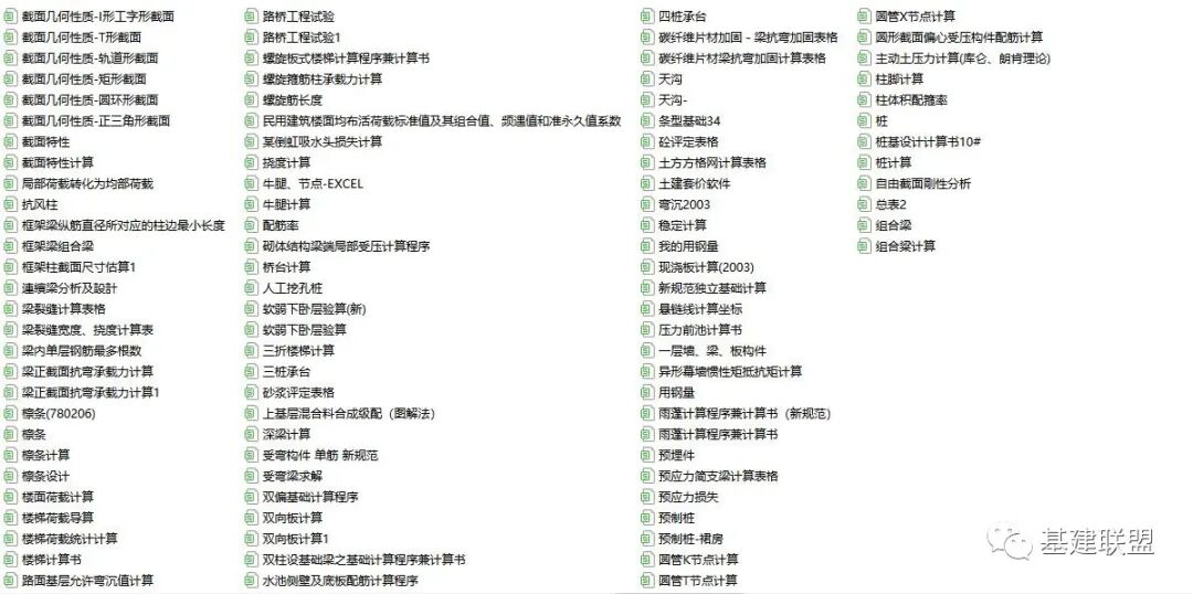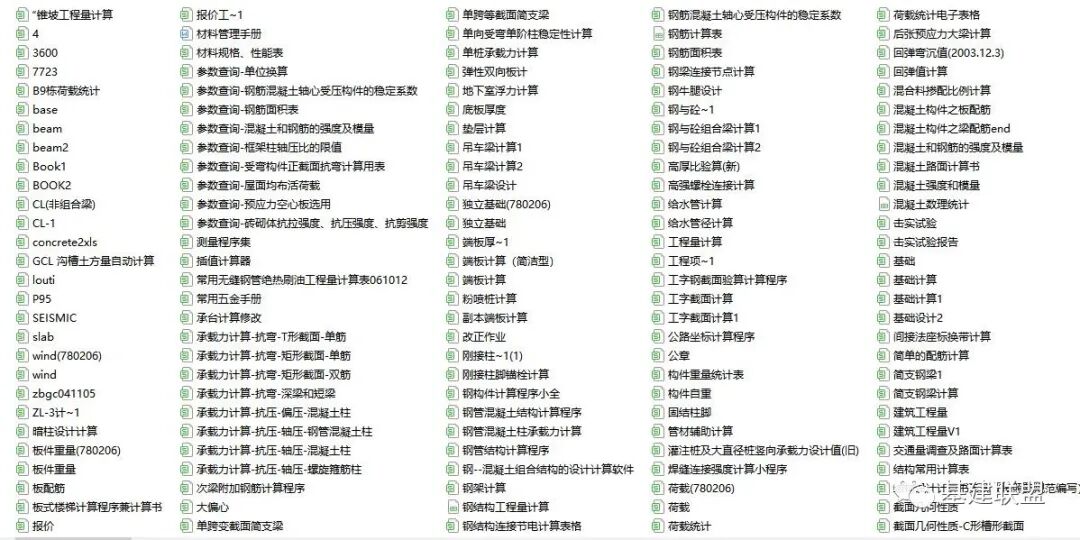 在建设工程及基础设施建设项目中,为了保证工程质量,会进行大量的计算。比如:抗裂缝验算、荷载验算、承载力计算、钢结构工程量计算、挠度计算及交通量调查及路面相关计算等。遂特意搜集236个建筑工程Excel计算小工具。涉及房建、路桥、岩土等方向非常值得收藏~(下载方式见文末)