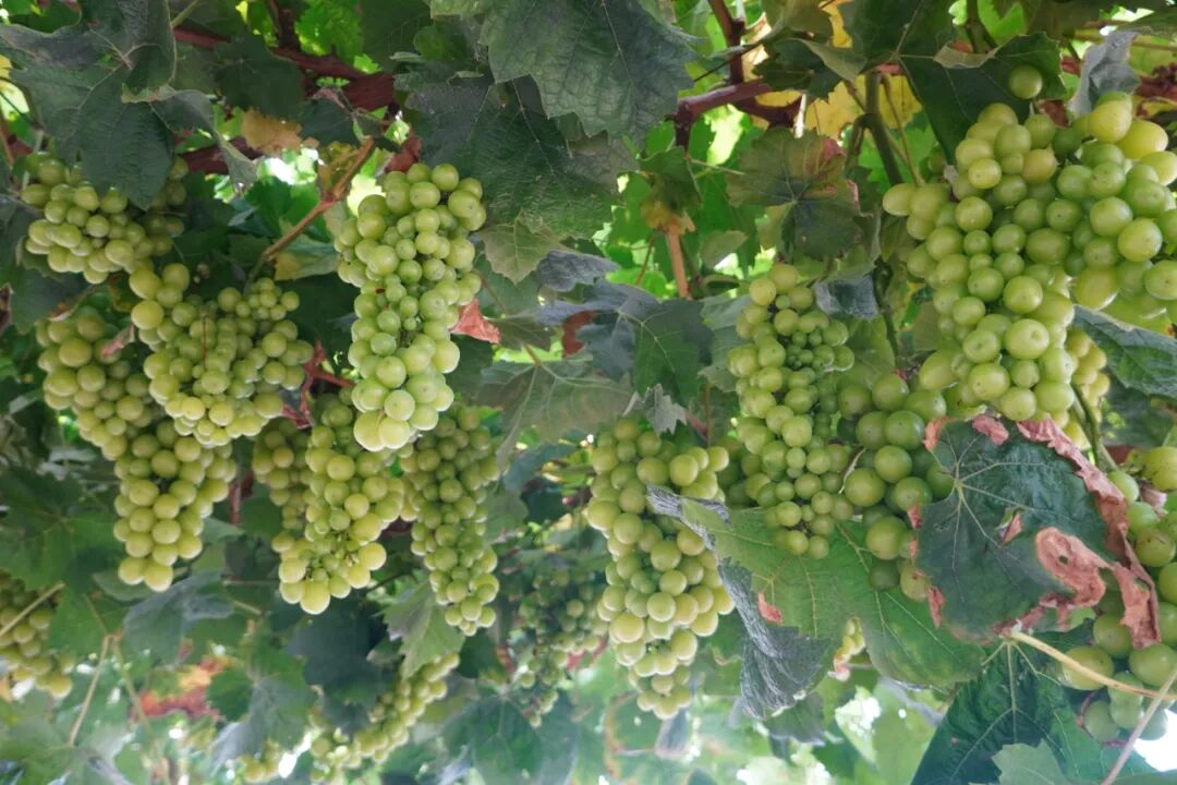 山村飘出的甜蜜果香,让山外的游客闻香而动。几位游客驱车而至,一下车就消失在果林里。基地入口处的葡萄架上,一串串葡萄挂满枝头,也即将成熟进入采摘期。