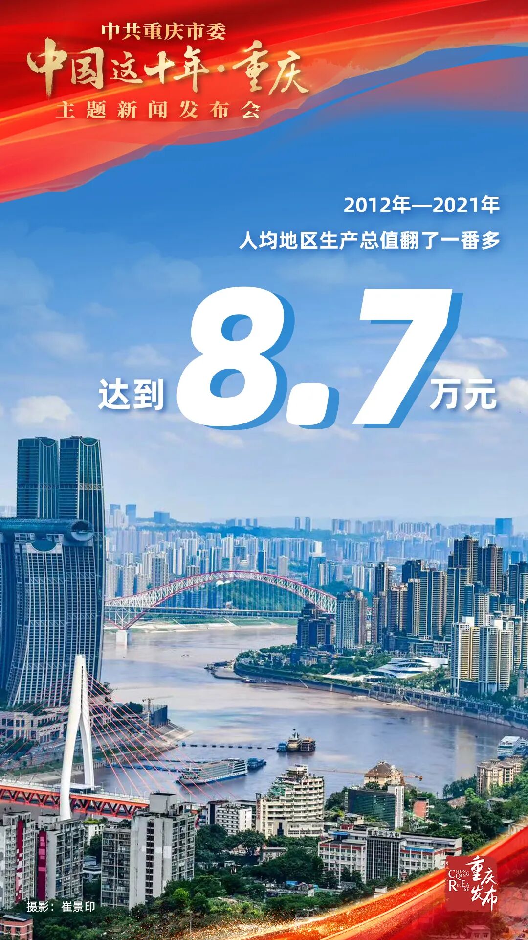 全市地区生产总值从2012年的1.16万亿元增至2021年的2.79万亿元、十年年均增长9.2%,近五年增加近1万亿元;人均地区生产总值十年翻了一番多、达到8.7万元。