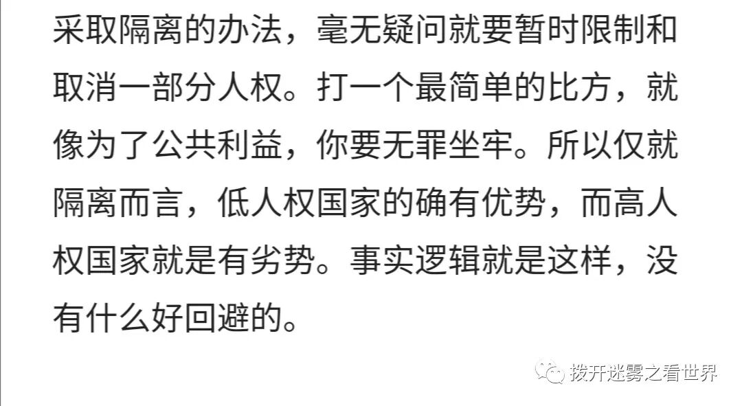 中国战胜了疫情,但是中国低人权;西方死了很多人,但是西方高人权;