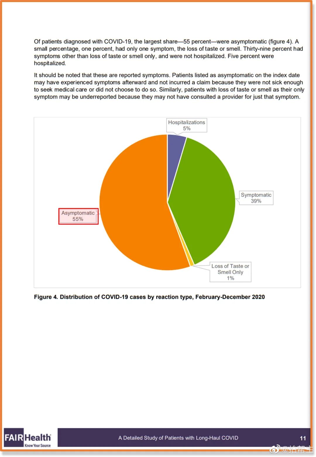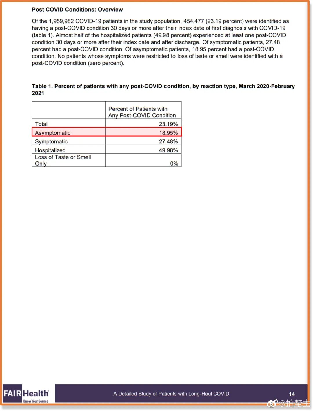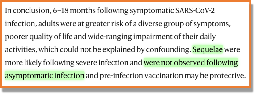 ——请再品鉴:由于没有对照组,也由于当时针对LC的临床定义和ICD代码都不算完善,所以这项研究不能告诉咱们无症状感染者具体的LC发病风险有多高,报告里提到的那个18.95%,各位看看就行,不用当真。 但没有关系。 各位只需要知道——Fair Health数据库里面,在2020年3月到12月期间,一共凭空多出了20万次来自无症状感染者的LC相关医保索赔——这就足以证伪NIH御用王博士关于“新冠无症状感染者没有后遗症”的奇葩论点了~ 毕竟,整整20万份理赔申请,不可能平白无故从天上掉下来吧? 看到这里,可能会有人跳出来为王博士打抱不平: “可是拍老师,人家王博士可是有堂堂《Nature Communications》上经过同行评议的paper做后盾的哦!难道《Nature Communications》上的大作还不如区区保险业某野鸡协会一份内部报告?” 嘿嘿,这事儿……这事儿要怪就怪王博士搬运东西的时候偷偷夹带私货吧。 ——请各位品鉴王博士搬运那篇Paper的原文结论:请细品高亮部分:“Sequelae……were not observed following asymptomatic infection……”.翻译成人话:“无症状感染后没有观察到后遗症……” 这尼玛,原文的“没有观察到后遗症”,跟王博士搬运过来的“没有后遗症”,这是一回事儿吗?????? 虽然咱对询证医学这类高大上学科一窍不通,但至少咱隐约听说过,他们循证医学界有这样一句入门口诀~ ——请品鉴:“The absence of evidence is not the evidence of absence.” “The absence of evidence is not the evidence of absence.”“The absence of evidence is not the evidence of absence.”(重说三) 所以王博士想必知道,他引用的这篇统共10万人规模的苏格兰全国性队列研究里头,有6.3万左右阴性对照组,有3.2万左右普通感染者,但却只有不到1800人属于无症状感染者~ 1800人这种迷你规模没能观察到后遗症,这似乎还不足以说明市面上就不存在无症状感染者的后遗症~(特别是对照组有瑕疵的情况下…后面详八) 总之,王博士面临的状态,到底应该属于“absence of evidence”(缺乏后遗症的证据)呢?还是应该算“evidence of absence”(实锤后遗症不存在)呢? 并且吧,各位但凡仔细读过王博士搬运那篇paper的原文,就应该能发现,就算打着《Nature Communications》的金字招牌,但这篇文章也并不是没毛病。 各位想必知道,所谓队列研究,其实原理挺简单,就是在两支代表队之间搞相互攀比~这种攀比要想攀比出什么靠谱的结果, 最重要的前提条件之一,就是控制好变量。 具体到LC这个语境而言,理想状态下,研究人员需要让两个队列之间只存在一个明显变量,那就是一边感染过新冠病毒,而另一边没有。其他的性别年龄基础病接种史社会经济状态什么的,则需要尽量保持一致,这样才更容易体现出感染新冠病毒和喜提LC之间的相关性。 然而,这篇《NC》大作真的敢拍胸脯保证,自己选的两支代表队能够一边感染过新冠病毒,而另一边没有吗? ——且看作者们自己怎么说:高亮部分翻译成人话: