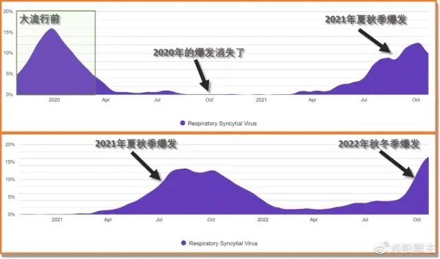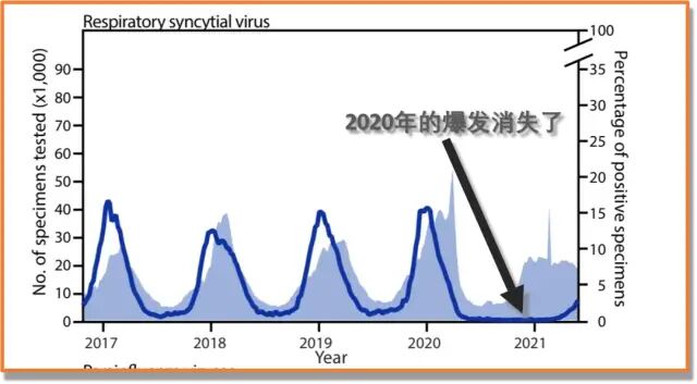 然而到了2021年,RSV华丽回归,跟之前的主要区别就是提前了一个多月,然后波峰也略低;