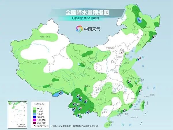 预计7月31日白天,内蒙古西北部、新疆南疆盆地东部和吐鲁番、甘肃河西、陕西关中、湖北西部、江南、华南、四川东部、重庆等地有35℃以上高温天气,其中,内蒙古西北部、新疆南疆盆地东部和吐鲁番、湖南南部、江西中南部、浙江中南部、福建大部、四川东部、重庆西部、广西东北部、广东中北部等地部分地区最高气温37~39℃,新疆吐鲁番盆地局地可达40℃以上。