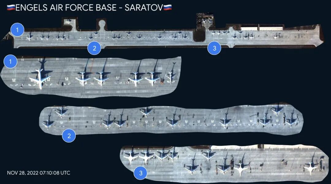 尽管全世界都感到了愤慨,但是在俄罗斯腹地,恩格斯空军基地从11月28日上午拍摄的50厘米卫星图像显示了Tu-95和Tu-160战略轰炸机的准备情况。明显他们是要甩开膀子大干一票。