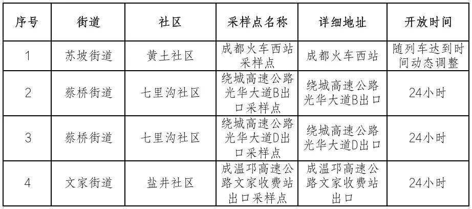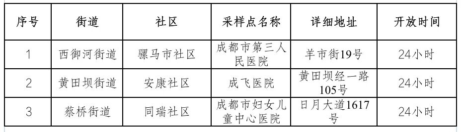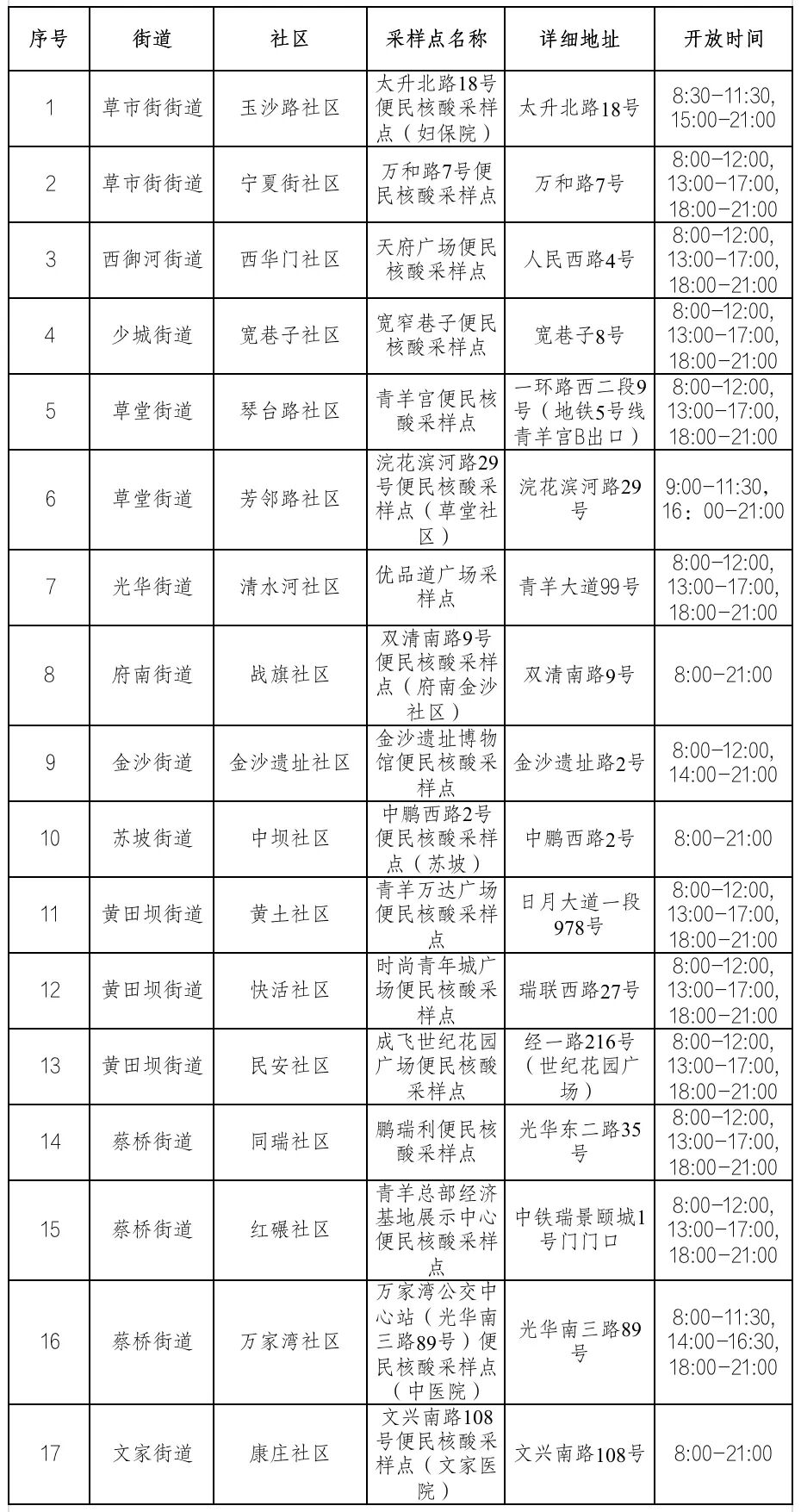 根据疫情防控需要,成都市青羊区对便民核酸检测“愿检尽检”点位进行了调整。现将点位相关信息公布如下。