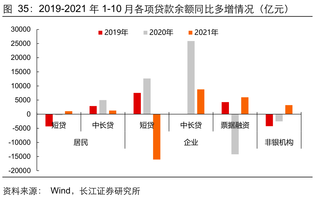 2)非标同比少减源于资管新规过渡期延长后,非标进入有序压降阶段。2018年4月资管新规正式稿落地后,“通道”和“多层嵌套”类资管产品规模大幅收缩,但由于大资管体系规模庞大、在原有过渡期(2019年6月30日)内压降完毕存在较大难度,因此过渡期数次延长(先是2020年底,再是2021年底),而非标规模在2017-2018年剧烈下滑后,2019起逐步进入有序压降阶段,亦对社融形成一定支撑。