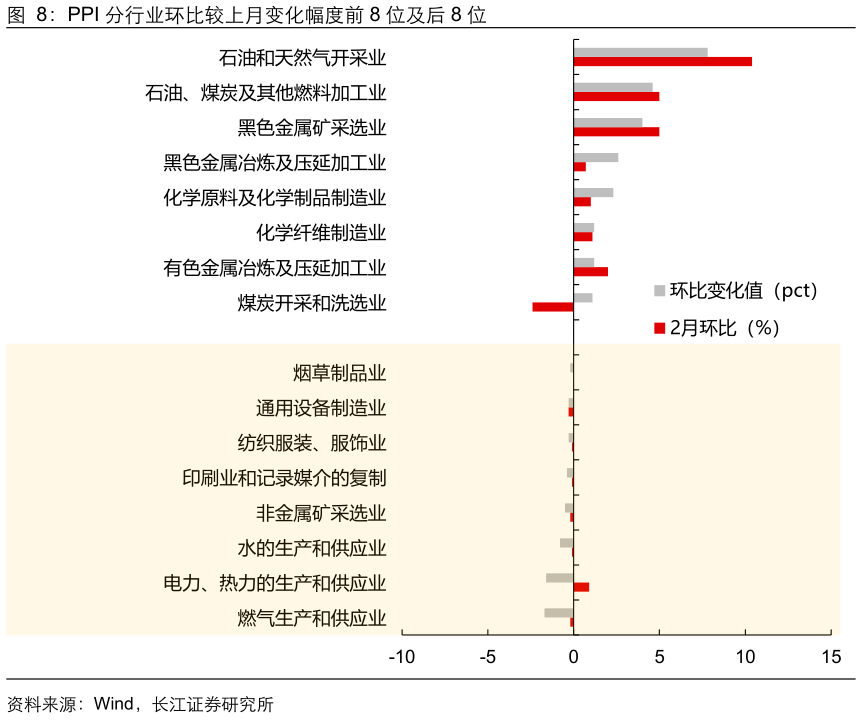 1、2月CPI同比增速持平、PPI同比增速回落,数据呈现出的通胀压力仍然温和。