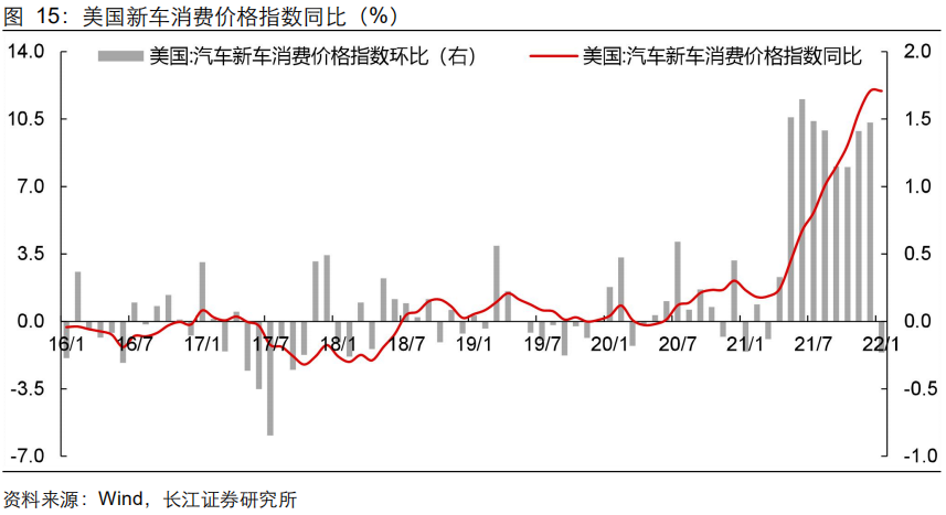 另一个典型的例子是汽车,新车、二手车供给短缺加速了通胀上行
