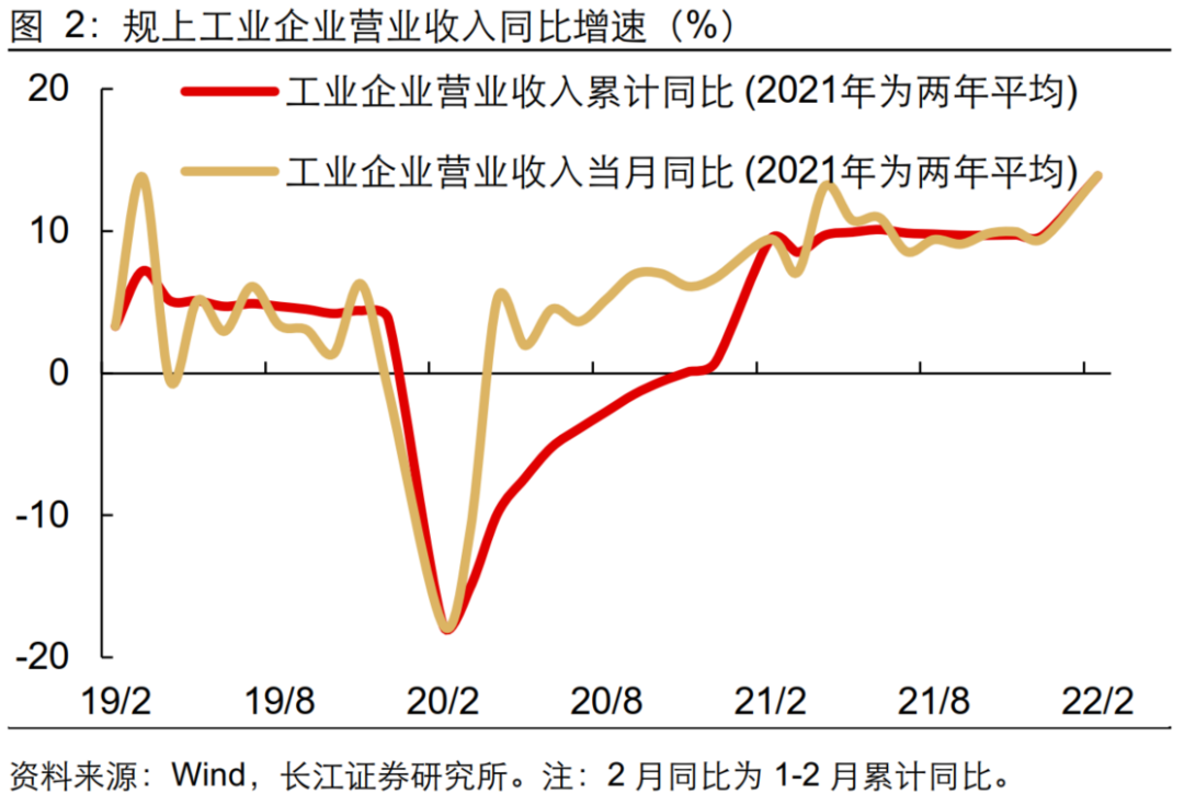 相较于去年12月两年平均增速,1-2月规上工业企业营收增速反弹至13.9%,但利润总额同比增速回落至5%。其中,41个个大类行业中,40个行业营收实现同比正增长,但仅有21个行业利润总额同比正增长。