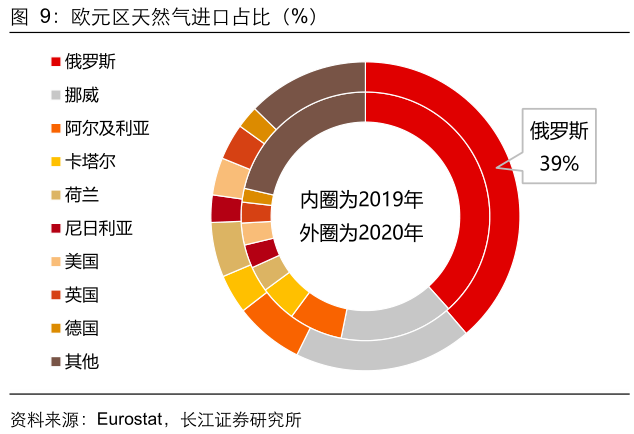 通胀方面,能源危机冲击下通胀持续飙升。由于欧元区是能源净进口国,而欧洲能源供应又高度依赖俄罗斯,受地缘政治影响,俄德直达的北溪2号天然气管道一直未能投入使用,俄乌冲突爆发和欧洲对俄制裁又再度引发能源短缺恐慌,欧元区2022年2月调和消费者物价指数(HICP)同比增长5.9%,其中能源价格2月同比增长更是高达31.7%,通胀攀涨压力已经成为欧元区当前面临的最大难题。