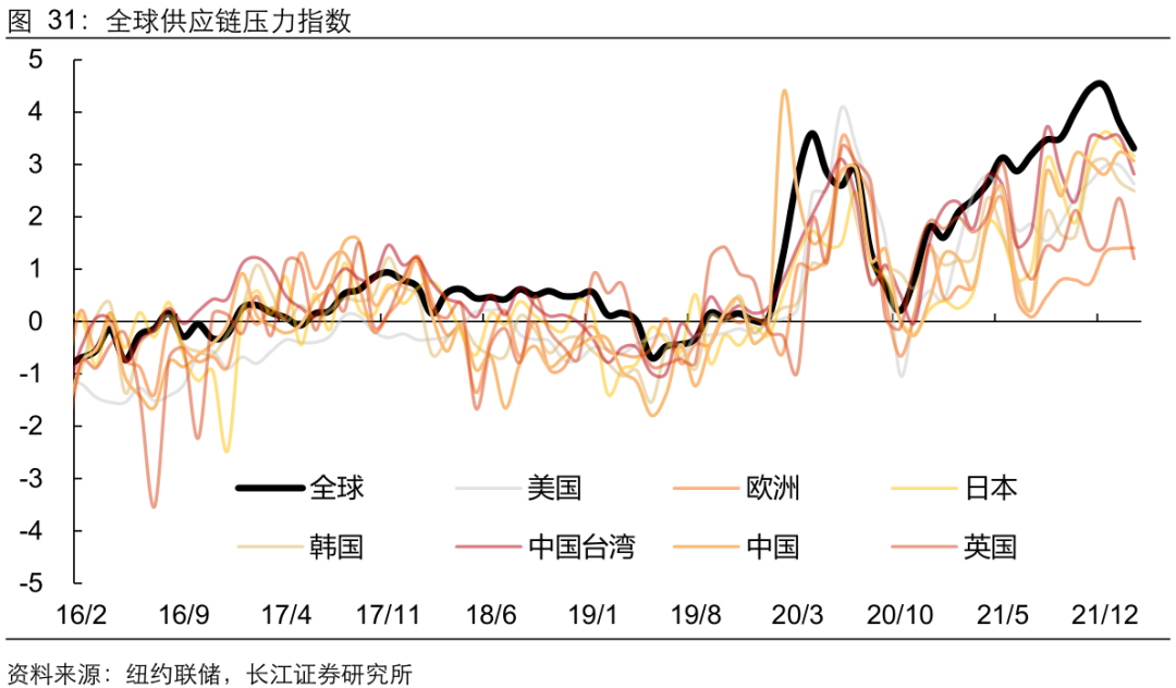 其次,生产短缺、供应链危机造成的缺口短期仍难弥合,全球通胀存在抬升的压力,挫伤经济增长动能。前期大幅宽松的政策环境和疫情的冲击下,需求激增、生产短缺、供应链危机造成的供需缺口持续推升通胀水平。尽管当前全球生产活动已经逐步恢复至疫情前水平,美国等的全球多个国家也选择加息以抑制需求,但在木桶效应下,供应链这块“短板”仍然制约着供需缺口收窄,使得通胀水平不断攀升,带动居民生活成本、企业生产成本持续走高,挫伤经济增长动能。