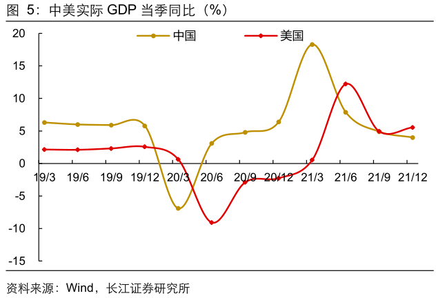 自疫情爆发已经过去两年有余,全球经济仍然难以摆脱疫情的阴霾。对于全球经济增长而言,疫情造成的冲击远超2008年金融危机,2020年全球实际GDP同比下滑3.1%,创下有记录以来新低。经过两年的艰难爬坡,全球经济虽有复苏迹象,但疫情尚未终结仍在制约经济增长。根据世界银行的测算,2021年全球实际GDP增速约为5.5%,以两年平均增速的视角看仅录得1%。同时,世界银行预测2022年GDP同比上涨4.1%左右,平滑疫情冲击后三年平均增速约为3.1%,也才刚刚接近疫情前平均水平。