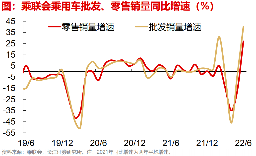 乘用车:减税带动销量增速转正,开工率小幅反弹。政策带动汽车销售持续转好,6月前26天,乘联会乘用车批发、零售销量增速分别大幅转正至40%、27%。销量转好带动渠道库存去化,6月份,衡量经销商库存压力主观感受的库存预警指数录得49.5%,2018年以来首次低于50%,反映销售向好有效缓解企业库存压力。而生产方面,汽车供应链生产节奏保持稳定,上周半钢胎开工率小幅反弹至64.6%,表现好于近2年同期。