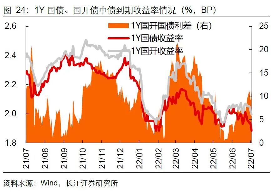 从期限利差情况来看,银行间质押式回购利差(R007-R001)、存款类机构质押式回购利差(DR007-DR001)周度均值分别走阔1BP、走阔5BP。
