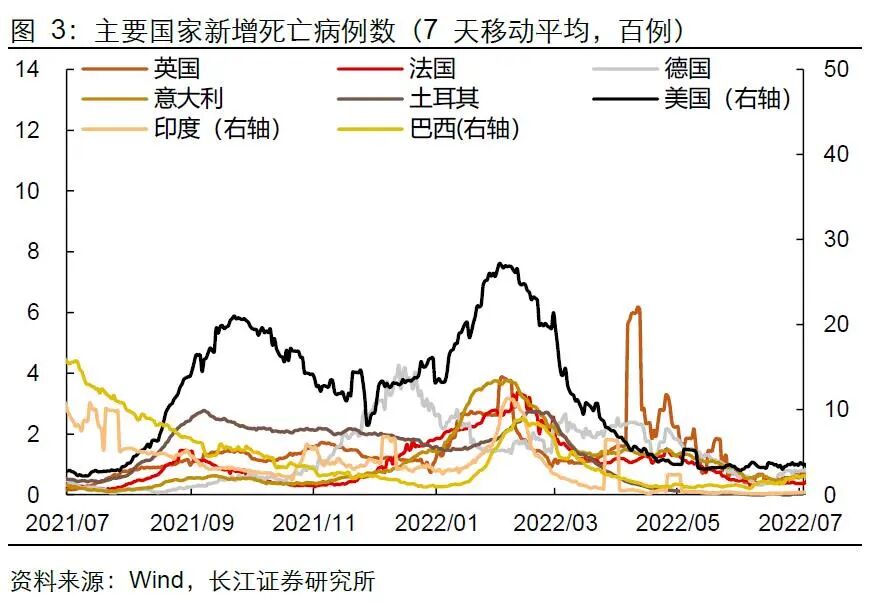 疫情跟踪:欧美开始推进第四剂疫苗接种。由于Omicron变异株BA.4、BA.5的快速蔓延,美国拟为50岁以下人群接种第四剂疫苗,欧洲疾控中心(ECDC)和欧洲药管局(EMA)也于7月11日发表声明,建议各国为60岁以上人群接种第四剂疫苗。