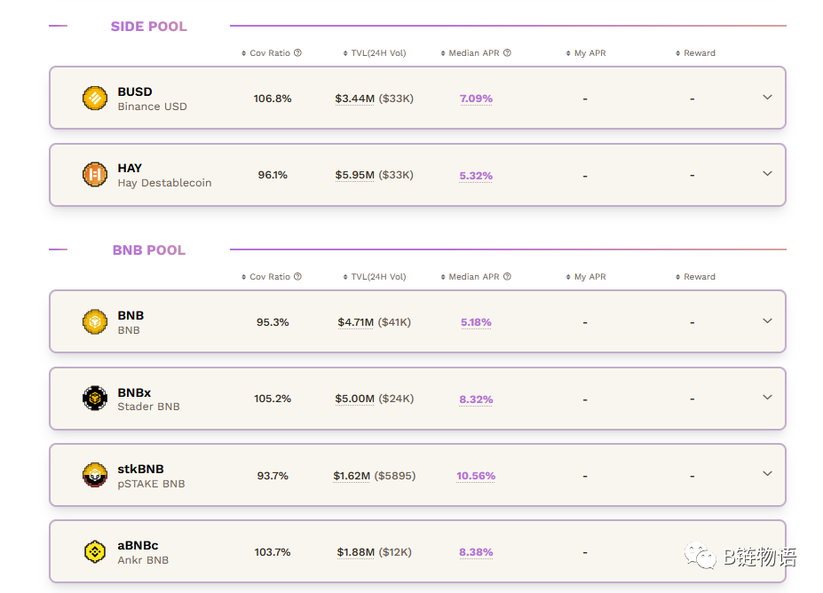 关于 Wombat 我们之前也有过介绍,Wombat 不仅仅能够提供稳定币比如BUSD、USDT、USDC 等流动性功能,同时我们也可以将 BNB 进行单币质押,同时获得相应的收益回报。