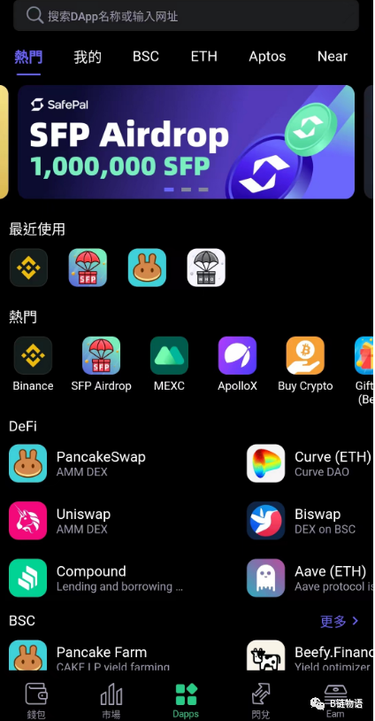 Safepal钱包内置DApp访问入口