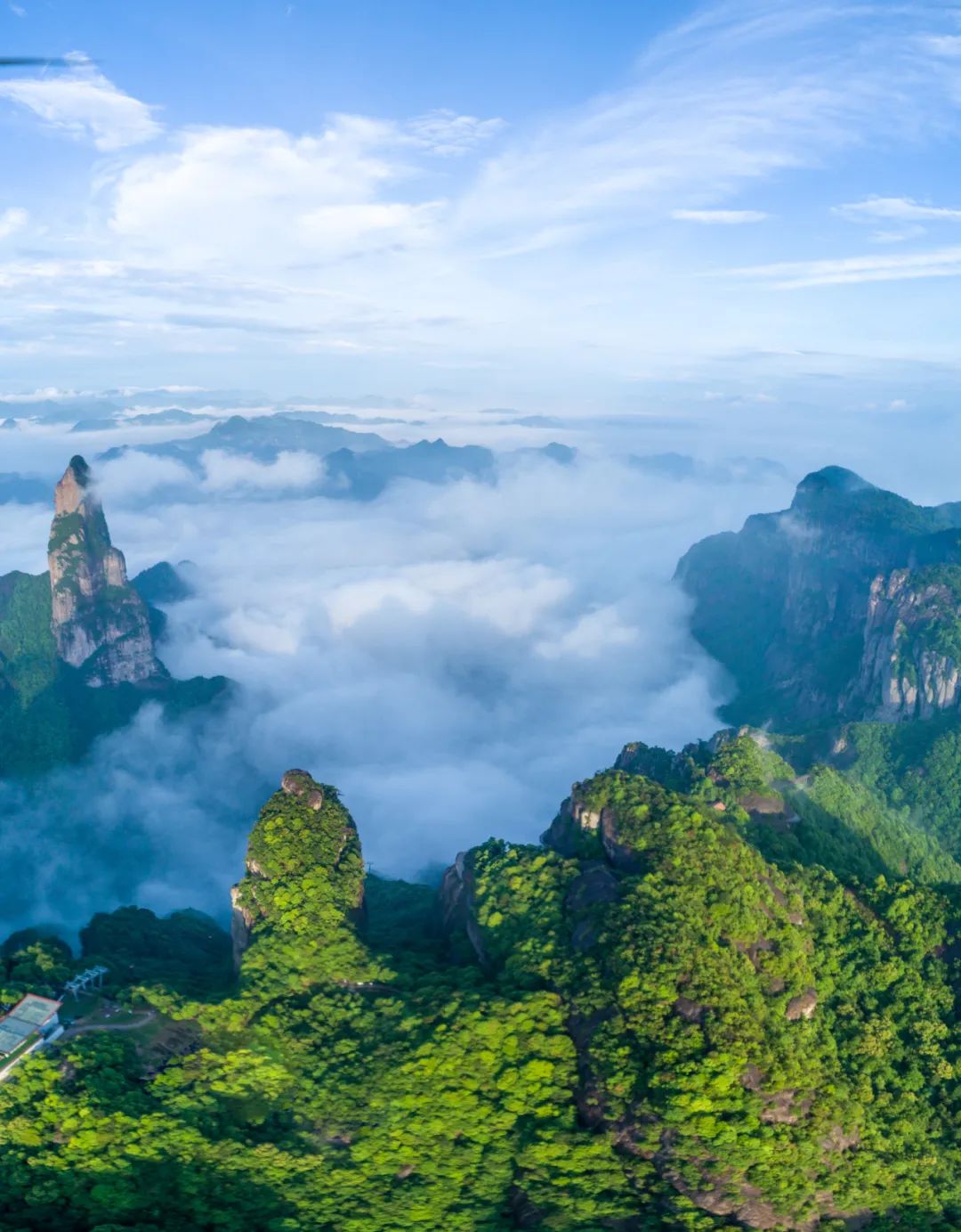 这里地质构造独特,是世界上最大的火山流纹岩地貌集群。一山一水、 一崖一洞、一石一峰,都能自成一格,形成“观音、如来、天姥峰、云海、飞瀑、蝌蚪文”六大奇观。