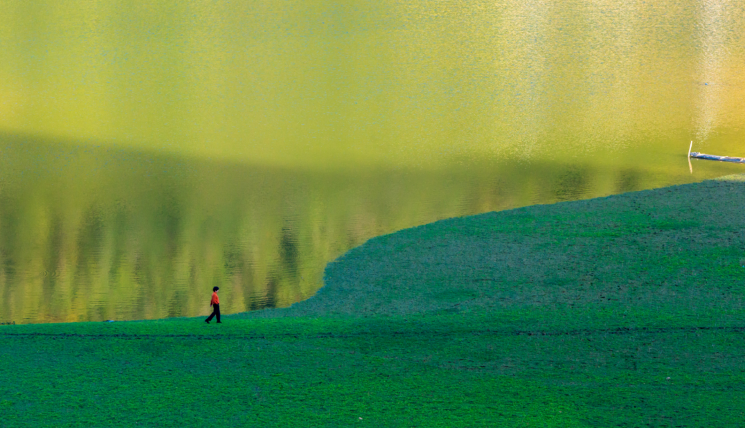 之所以被称为是“限定草原”,是因为这个季节紧水滩库区水位下降,库湾的湖底便裸露出来,形成了成片的草地。