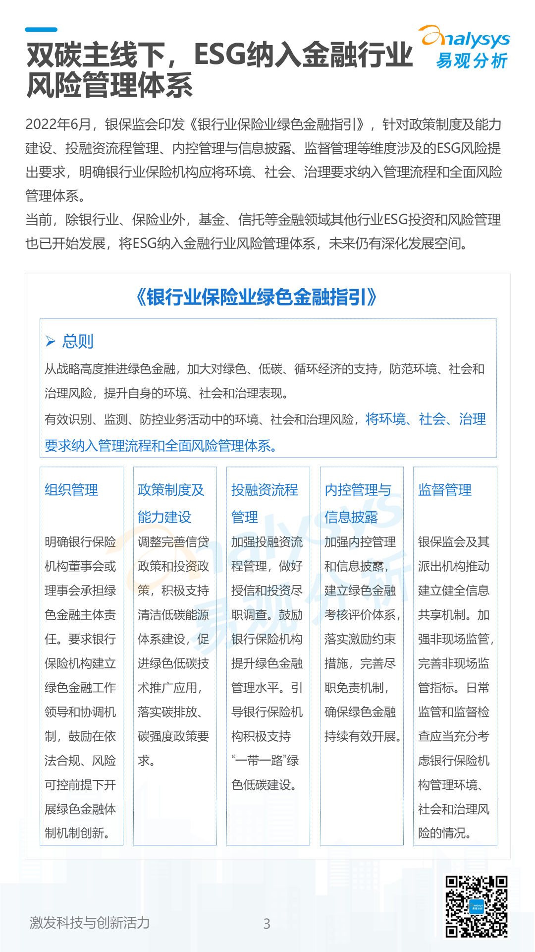 《数字经济全景白皮书》持续关注绿色金融发展。双碳战略驱动绿色金融发展,科技与绿色金融深度融合。当前多层次绿色金融产品和市场体系初步形成,助推全面绿色转型,绿色金融市场规模不断扩大,银行、保险等金融行业持续进行绿色金融产品创新,金融科技助力绿色金融提质增效。