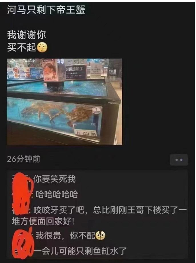 盒马生鲜也只剩帝王蟹了。