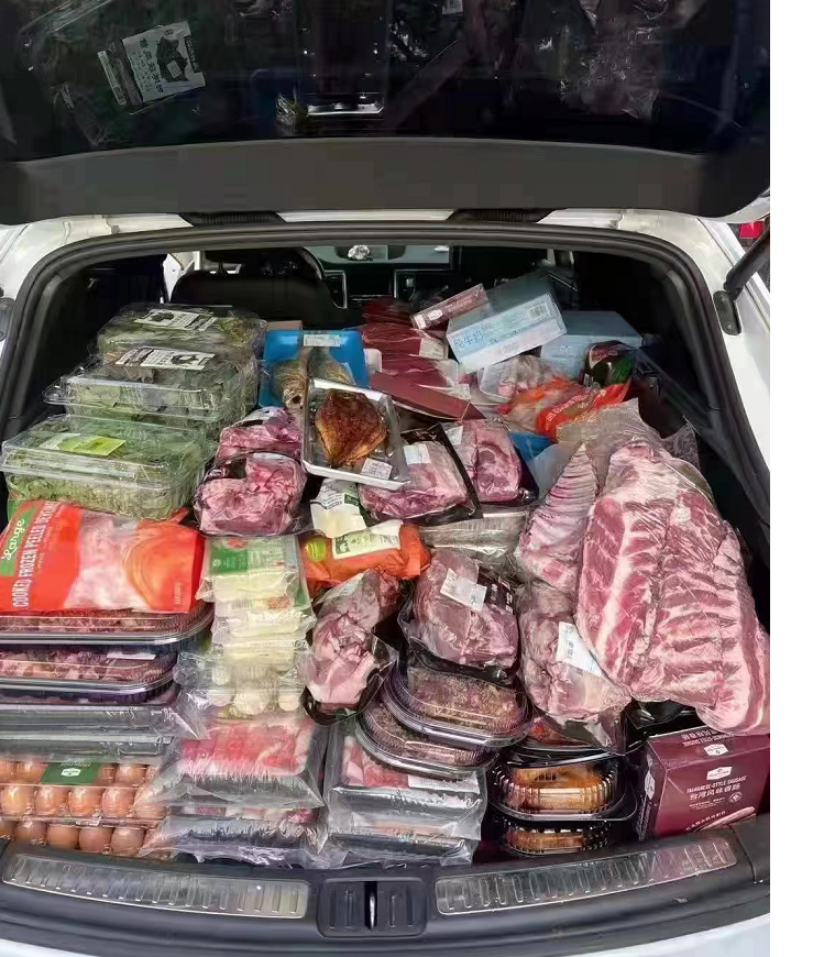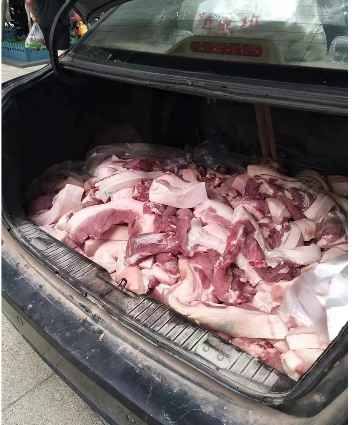 喜欢吃肉的网友则在后备箱里装了满满一车猪肉。