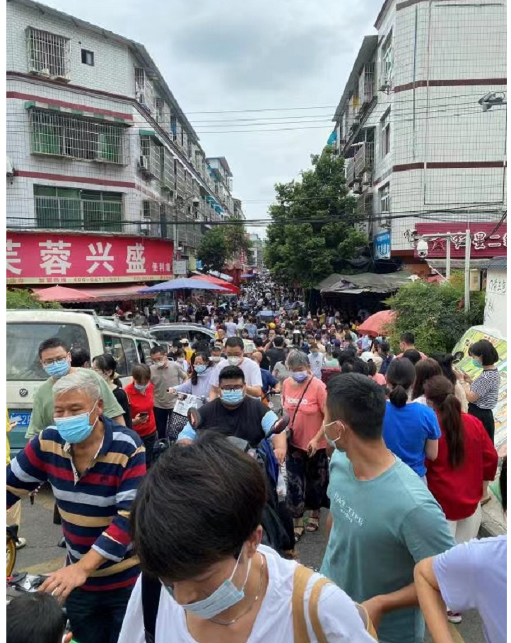 这是另一个菜场,也是人山人海。