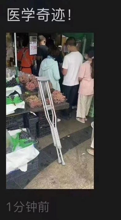 抢得上头了,拐杖都扔下了。