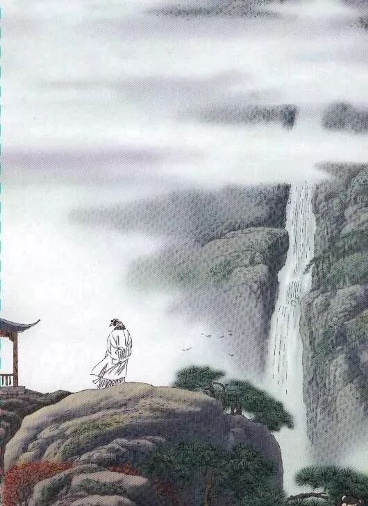 “飞流直下三千尺,疑是银河落九天”,一个“飞”字,将瀑布喷涌而出的景象描绘得生动传神,一泻千尺的水柱由高空直落,喷珠溅玉、雷霆万钧、势不可挡,然而这似乎也无法穷尽诗人的满怀豪情;他紧接着又吟出一句响绝天外、惊人魂魄的妙喻“疑是银河落九天”。一个“落”字,点出了瀑布自由倾泻的磅礴气势,恍如天上的银河从云端坠落。而“疑是”二字,更是神来之笔。那千尺飞瀑瞬刻成了诗人心境的物质呈现。似与不似之间,一条飞瀑幻化为一个千古美学意象,痛快淋漓、天才极致“入乎其内,发乎其外,想落天外,形神兼备”,创造了中国古典浪漫文学交响音诗的极致。