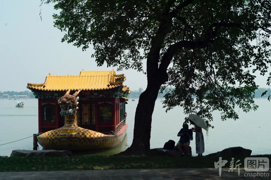 6月27日,北京,市民在颐和园昆明湖边休息。