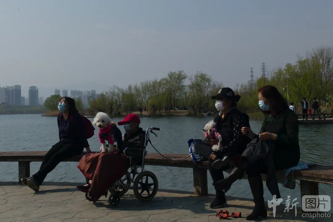 4月6日,市民在北京莲石湖公园休息。