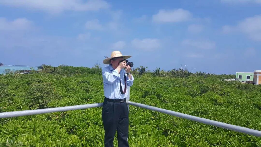 ▲图为杨旭在西沙群岛赵述岛采访。(钟新摄)