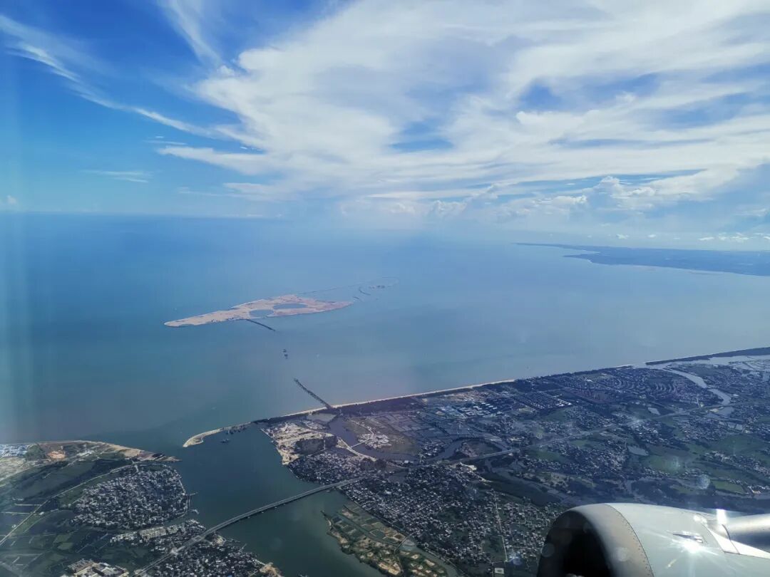 ▲图为出差航班上拍摄琼州海峡。(杨旭摄)