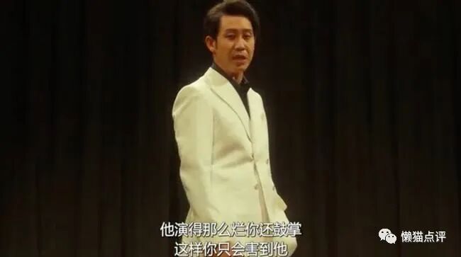在舞台上,他大声斥责乱鼓掌的观众,“他演得这么烂还鼓掌,只会害到他。”